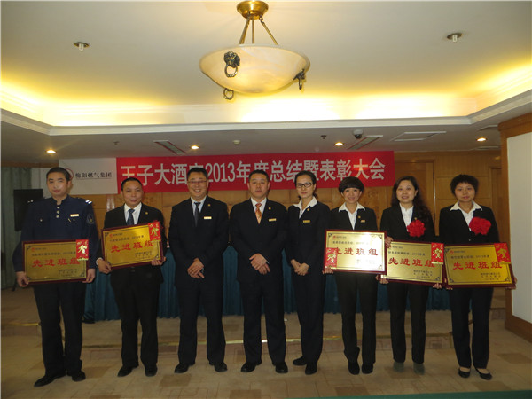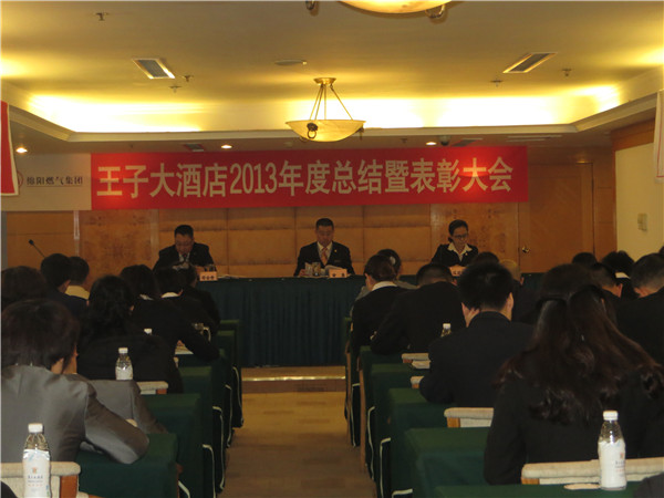 2014年1月27日,王子大酒店在18楼四海苑召开了2013年度工作总结暨表彰大会,酒店领导、各部门管理人员、员工代表及租赁点负责人共计76人参加了会议。