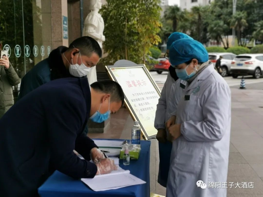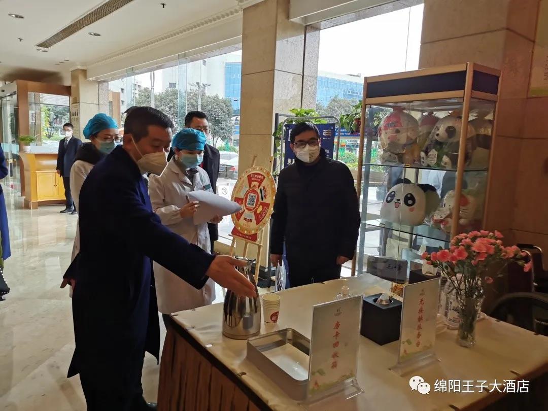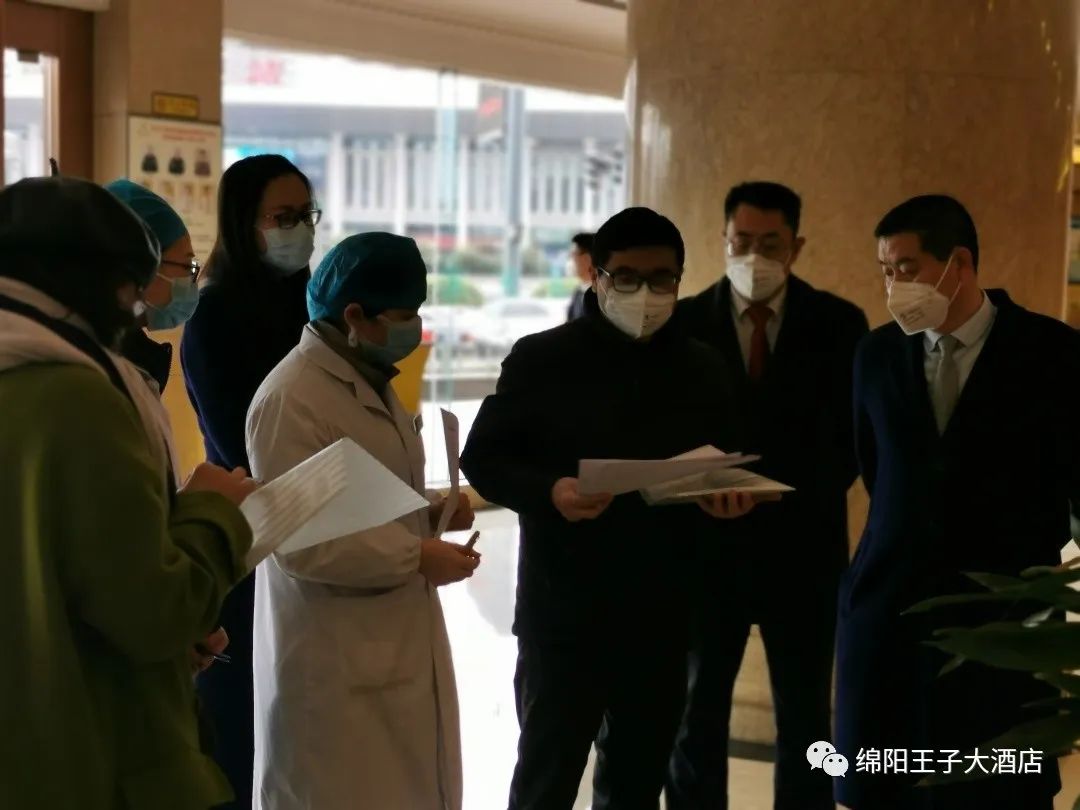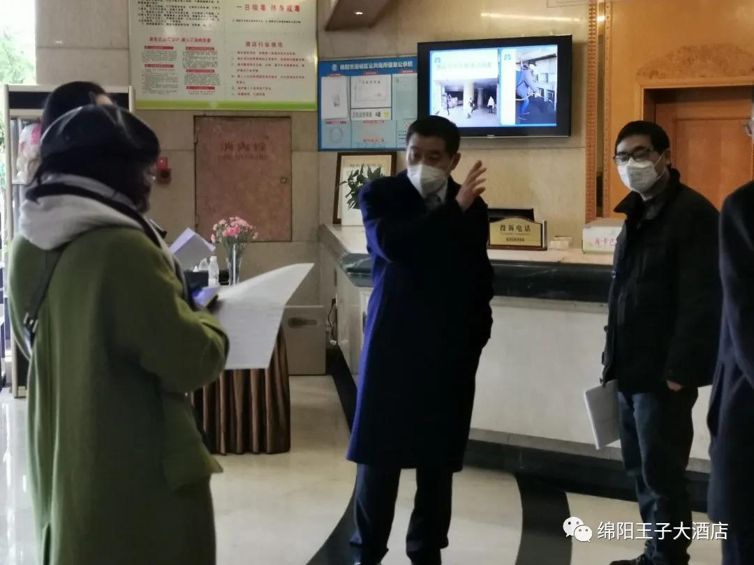 3月2日中午2时许涪城区疾控中心、涪城区工区街道会同防疫站工作人员一行来访王子大酒店,酒店总经理黄勇带队接受了相关单位检查。