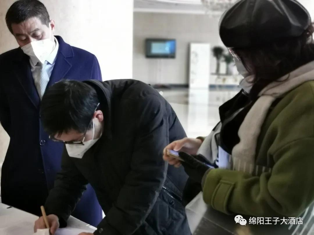 此次来访,涪城区疾控中心、涪城区工区街道防疫站工作人员意在评估王子大酒店是否具备疫情之下的营业资质、防疫工作是否合乎行业规范。